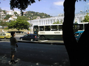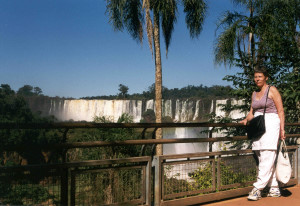 | Tropeøen var meget malerisk, her fik vi en skøn frokost, og gik en tur i den skønne natur. | Det blev selvfølgelig også til vandreture i Rio, her er vi ved en gammel jernbanebro, som nu bruges af sporvognen. | Lørdag 21. april ankommer vi til Iguazu, og starter med en udflugt til hvad der den gang var verdens største vandkraftværk, det producerer 12,6 mill. kW, det producerer strøm til Paraguay og Brasilien. De 12,6 mill. kW svarer til 85 % af Paraguays forbrug plus 25 % af Brasiliens i 2000. | Foz do Iguazu er et kæmpe vandfald, det har