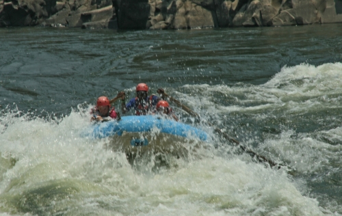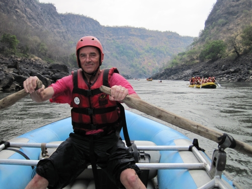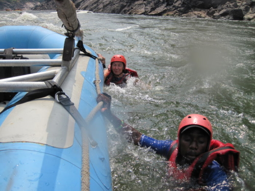 Vi sidder nu alle og skriver dagbog efter en ubeskrivelig dag på Zambezi River. Vi havde en rigtig god bådfører og vi havde det rigtig sjovt, for vi var jo ikke nogen gamle afdankede personer, som ikke kunne tåle sjov. Vi var i vandet og svømme flere gange. Vores bådfører hed ”Kartoffel” på engelsk og han kunne bare styre vores båd. Vi kom igennem alle vandfaldene uden at falde ud og det var fantastisk. Vi var igennem 25 vandfald + nogle ¼, ½ og ¾ fald, det var alle dem, som ikke var så høje, så vi skulle ned i båden og holde ekstra godt fat. Det har simpelthen været alle tider dag.