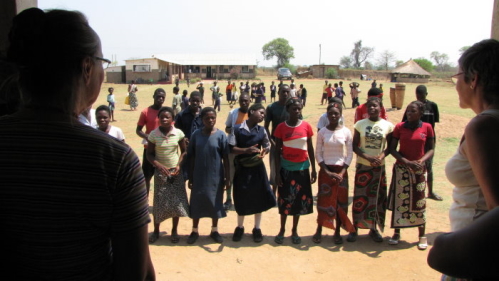 Efter skolen blev vi kørt tilbage til Chadiza. Her blev vi modtaget med sang og dans. Kl. var nu blevet 12. Vi blev vist ind i en lille hytte, hvor der sad nogle mænd og lidt efter lidt kom en del af kvinderne også ind. De satte sig på gulvet (som var dækket med nogle fine måtter), mændene på nogle hjemmelavede skamler, to af de ældste kvinder sad også på skamler. Nu havde vi 1½ times snak frem og tilbage. De spurgte os, om vi kunne lide ugali (det hedder det på Swahili, i Zambia hedder det mshima) og det kan vi, det blev de meget glade for at høre. Mshima er en meget stiv majsgrød, som man spiser i stedet for kartofler. Den skal helst spises med fingrene, da det eneste, vi fik udleveret, var en tallerken, var der kun en måde for os, at få mad på, det var ved at følge den lokale skik. Der var noget snittet kogt grøntsagsnoget (måske græskarblade) samt en kogt kylling, den smagte godt, men den var så sej, som en gammel suppehøne.