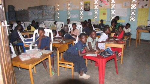 En skoleklasse i Nega-Nega, det var ikke denne klasse der var helddige at få nogle af vores borde. |