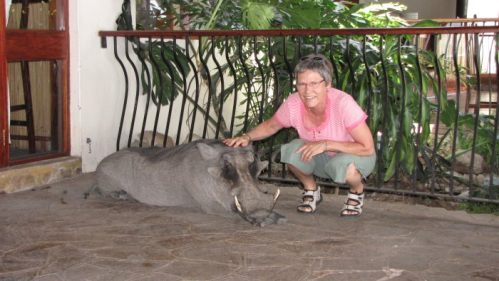 Mukambi Lodge havde et tamt vortesvin, som boede på lodgen og nede under restauranten boede hans familie, mor og tre børn. Han hed selvfølgelig Pumba. |