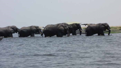 Det var spændende at se elefanterne krydse floden mellem Botswana og Namibia |