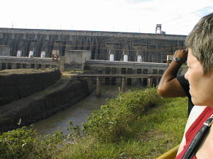 | Tropeøen var meget malerisk, her fik vi en skøn frokost, og gik en tur i den skønne natur. | Det blev selvfølgelig også til vandreture i Rio, her er vi ved en gammel jernbanebro, som nu bruges af sporvognen. | Lørdag 21. april ankommer vi til Iguazu, og starter med en udflugt til hvad der den gang var verdens største vandkraftværk, det producerer 12,6 mill. kW, det producerer strøm til Paraguay og Brasilien. De 12,6 mill. kW svarer til 85 % af Paraguays forbrug plus 25 % af Brasiliens i 2000. | Foz do Iguazu er et kæmpe vandfald, det har