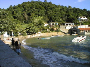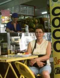 | Der var ikke morgenmad inkluderet på hotellet, vi fandt hurtigt en lille cafe, hvor vi både kunne få morgenmad og frokost til en fornuftig pris. | Den triste bagside af en ellers flot by, som Rio er slumkvartererne (Favelaerne), vi så dem kun som her på afstand. | Når man er i Rio, skal man selvfølgelig også op til Kristus statuen, som står på et lille bjerg i udkanten af byen og ser ud over Rio. | Fra Rio tog vi på krydstogt med et gammelt sejlskib til nogle tropeøer, som ligger ud for kysten et stykke syd for Rio. |