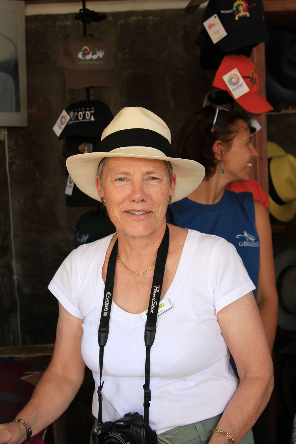 | Vibeke fik lov at prøve en ægte Panamahat - pris 300 $ | Gyldenbrystet Kernebider - Golden-bellied Grosbeak - Pheucticus chrysogaster | Vi fik opskriften på at lave skrumpehoveder, opskriften var malet på bagvæggen hele vejen rundt i showroomet. Der var to grunde til at lave skrumpehoveder. Den første var, at man lavede det for at beholde den afdødes sjæl og vise den afdøde en sidste ære. Den anden var fjender man huggede hovedet af og derpå viste frem, for at vise hvor mange man havde gjort kål på |