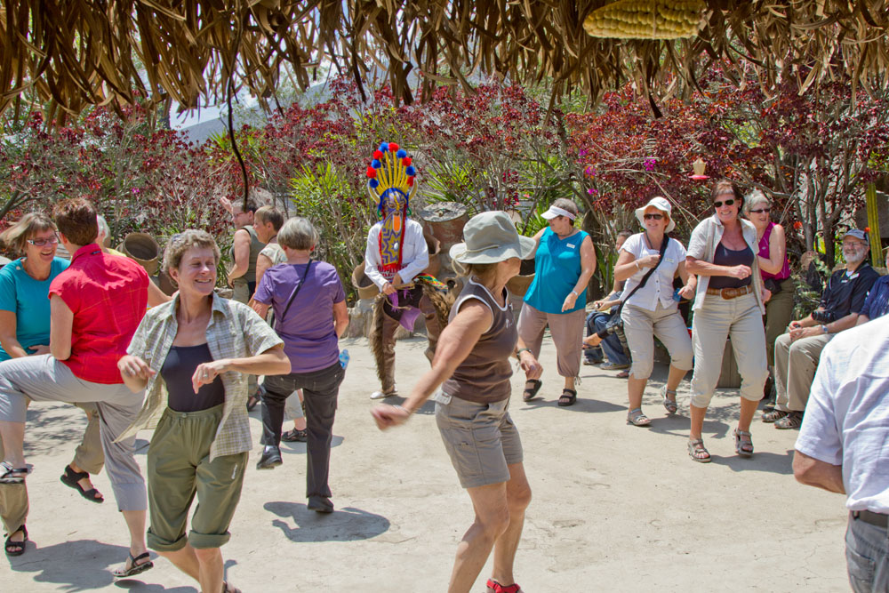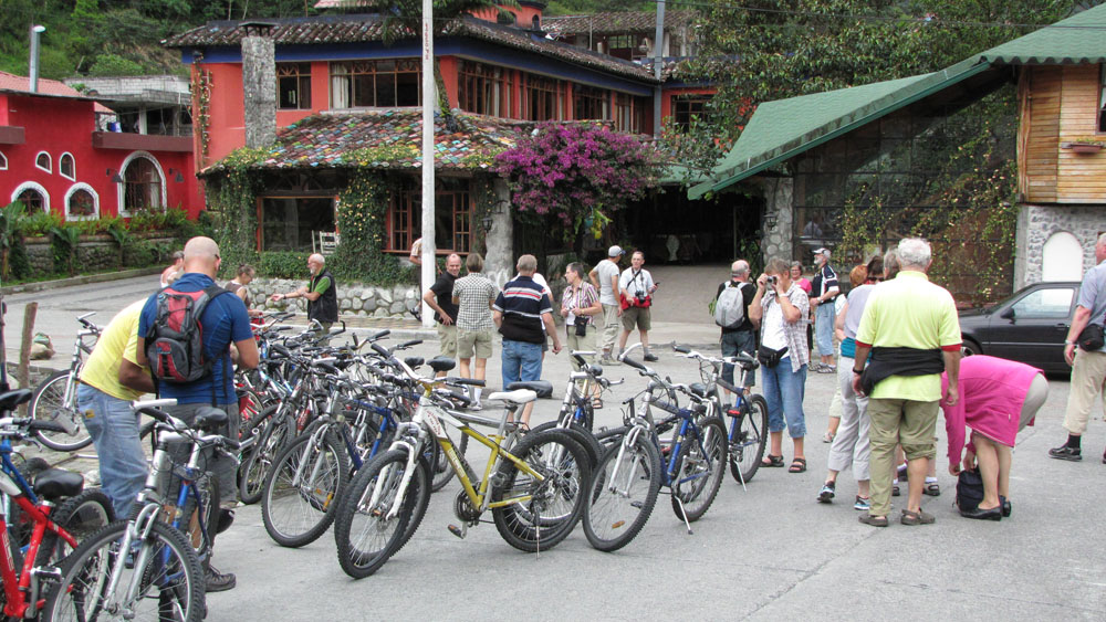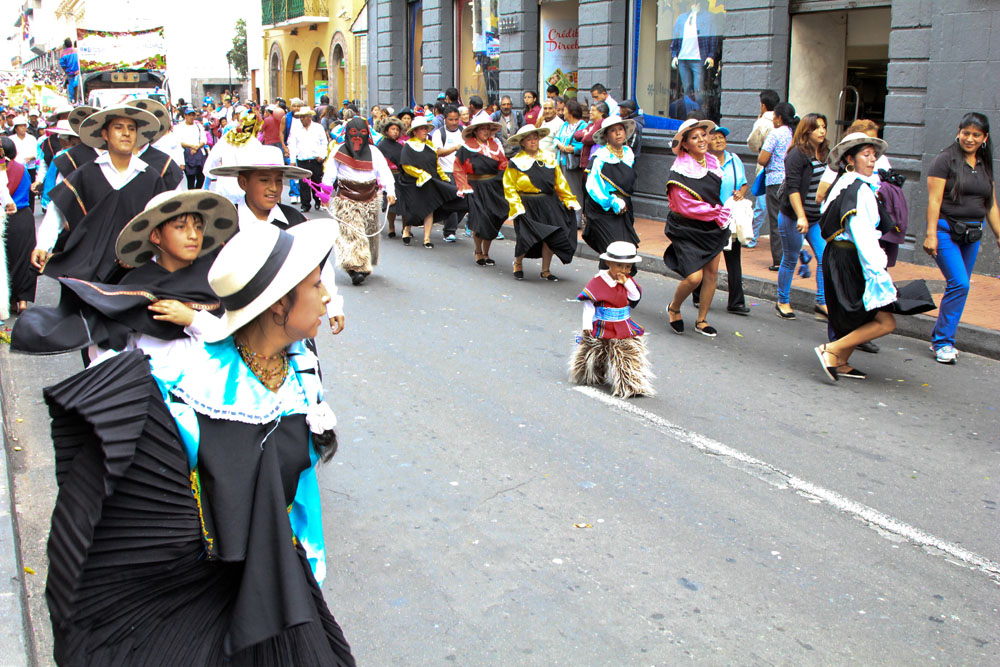 | Det blev budt op til en djævledans, pigerne og nogle af drengene tog udfordringen op | Fantastisk farvestålende blomster | Mirador Del Pululahua er efter sigende er verdens største krater, som er beboet. Krateret er meget frugtbart, der dyrkes grøntsager i krateret, som bringes ud af krateret til de omliggende markeder, hvor de sælges til lokalbefolkningen |