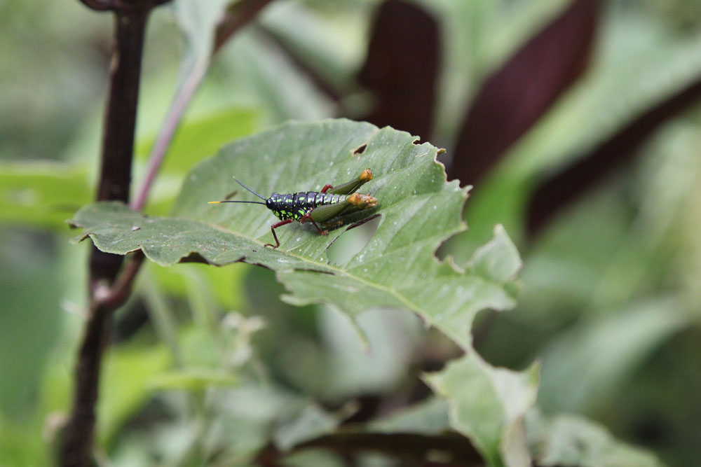 | Prangende Græshoppe | Diaeus variegata - en art Bredpande | Blue-Gray Tanager - Thraupis episcopus |