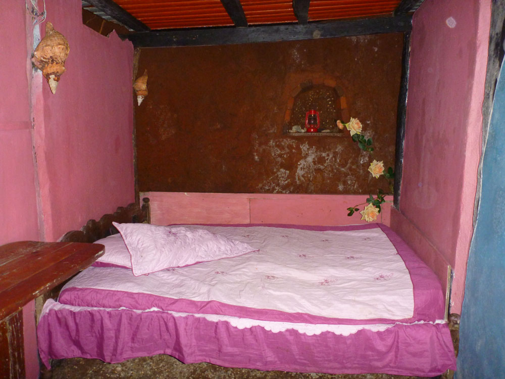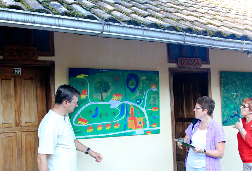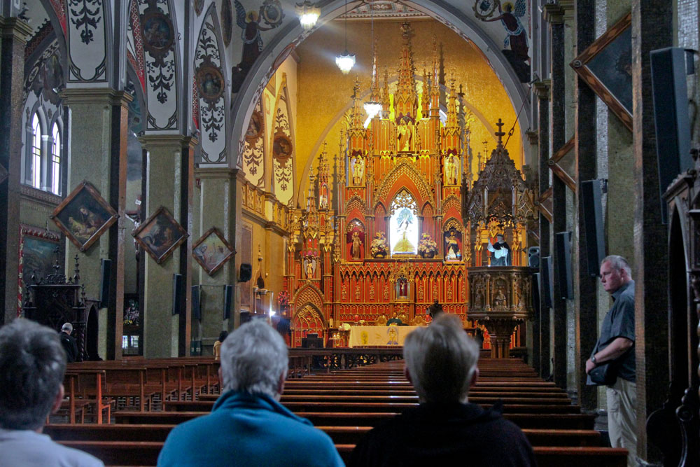 | Tirsdag 6. november. Inde i katedralen i Banõs | Banõs er i øvrigt meget kendt for sit håndlavede "brystsukker" | Ejeren Bernhardt viste os på et hjemmemalet kort, hvor vi skulle bo, hvorefter vi fik udleveret nøglerne |