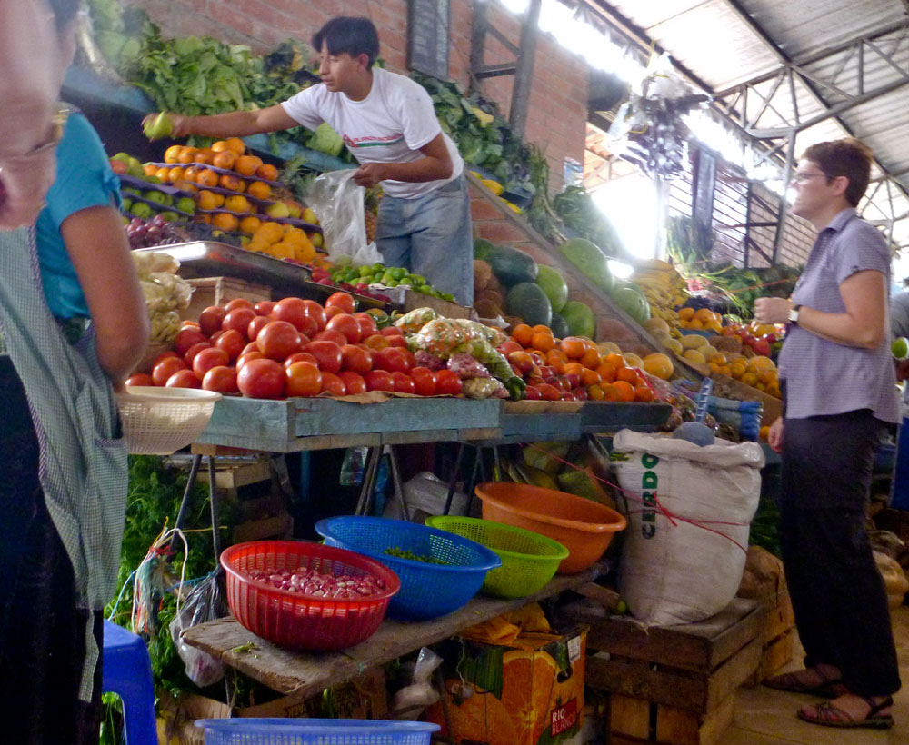 På markedet i Tena. købte Lone bl.a. frugt "til bussen" |