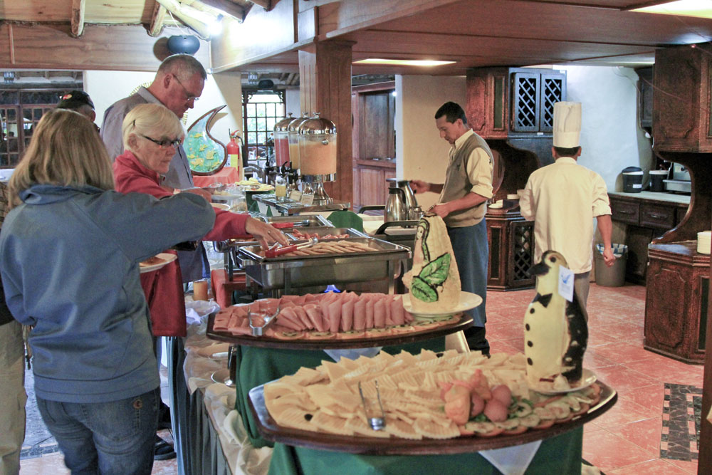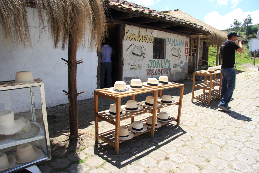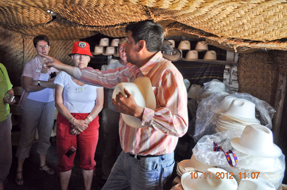 | Lørdag 10. november. Overdådig morgenbuffet | Vi vågnede til en flot klar himmel med udsigt til Artisana | På vej til Otavalo lavede vi et lille stop ved en hatteshop |