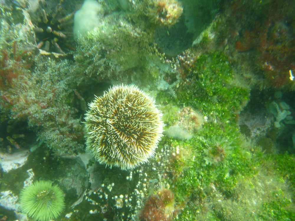 | Dagens næste oplevelse var en "dykkertur", her er det Jørgen Peder i vandet | Blyants søpindsvin - Pencil Sea Urchin | Vandet er meget klart, så der er meget at se på |