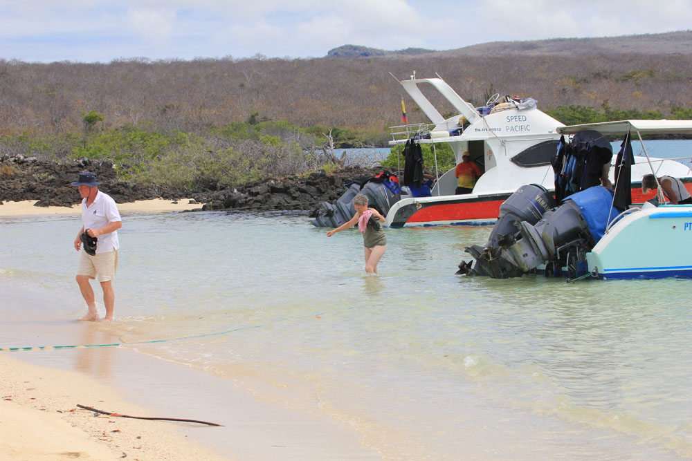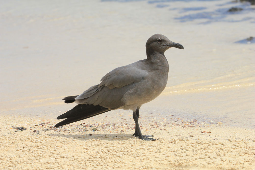 | Det var med at hive op i buksekanterne, hvis vi ikke ville være våde, når vi vadede i land fra bådene på de små øer | Spøgelseskrabber - Gost Crab - Ocypode gaudichaudii pilede rundt på stranden, de var meget sky, de smuttede ned i deres huller på lang afstand af os | Lavamåge - Lava Gull - Leucophaeus fuliginosus |
