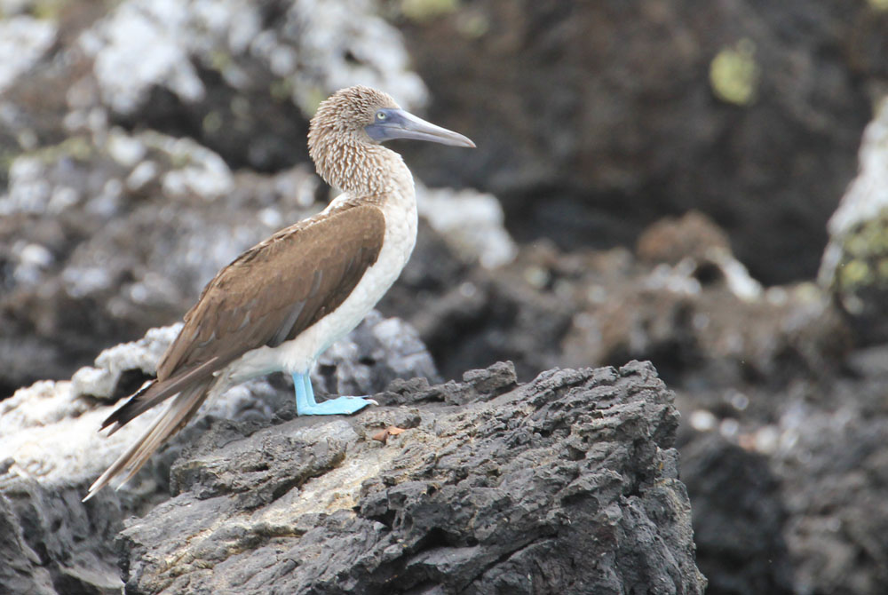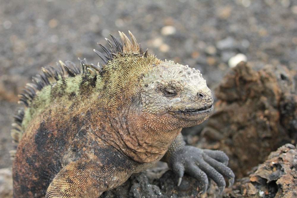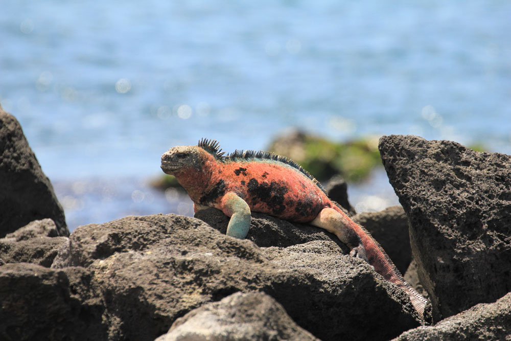 | Nærbillede af en havleguan | Vi så også den pingvin, der er lever nordligst af alle pingvinarter. Galapagos pingvinen er den tredje mindste pingvin i verden | Blåfodet sule |