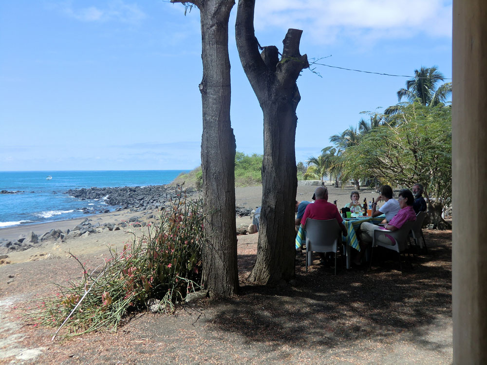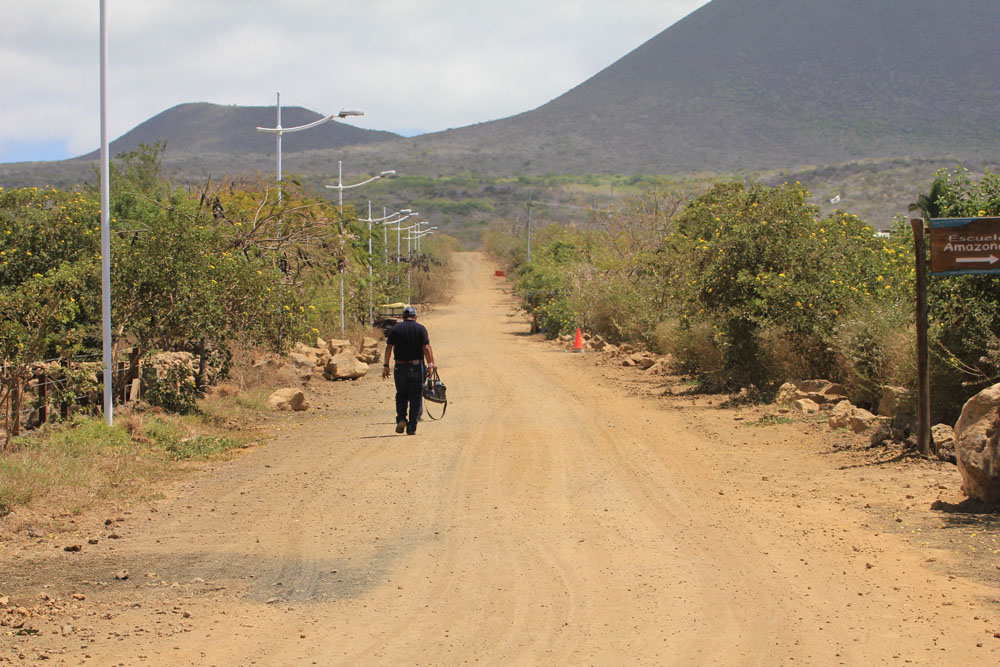 | Hovedgaden på Floreana | Hotellet, hvor vi spiste frokost, var ejet af en tysk familie. Floreana er den ø, der har været beboet i længst tid af alle Galapagos øerne | Sally LetPåTå krabberne har en meget flot underside |