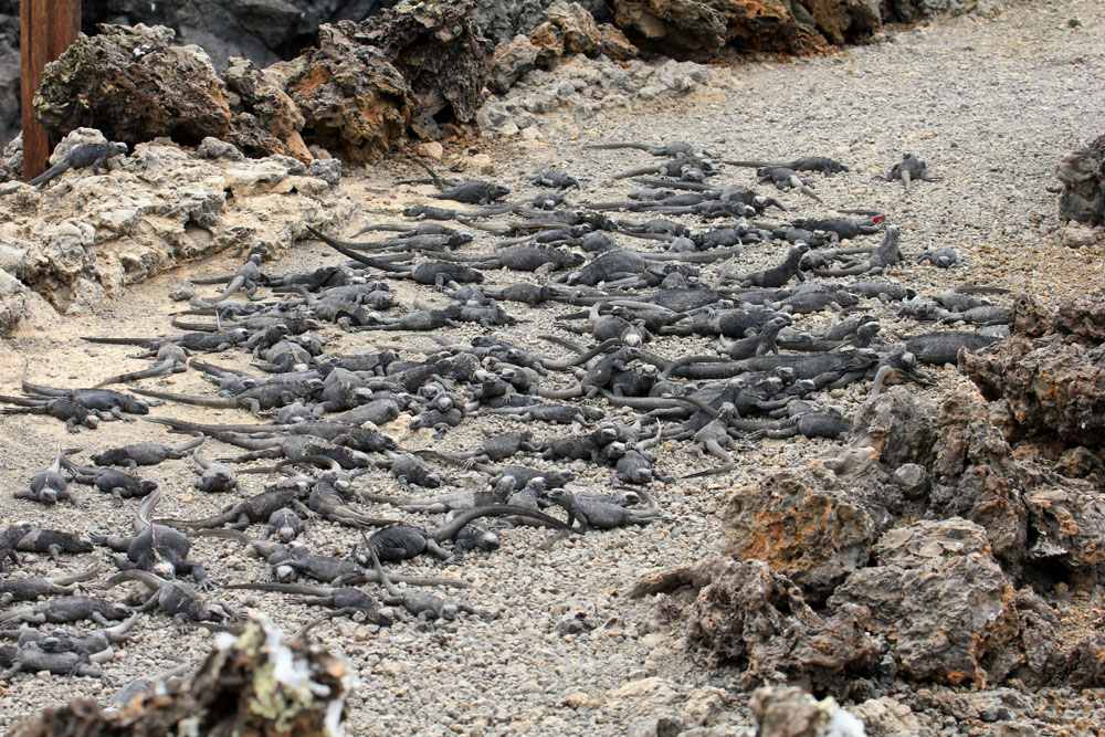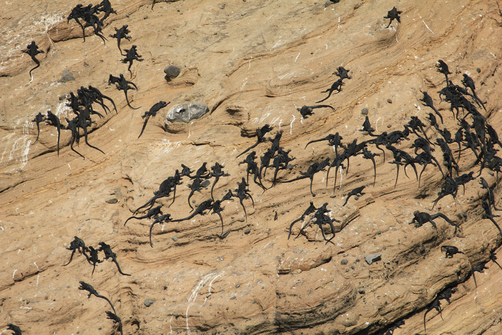 | De små havleguaner sad højt oppe på klippevæggene | Sejlturen fra Floreana til Isabella | Isabellabussen |