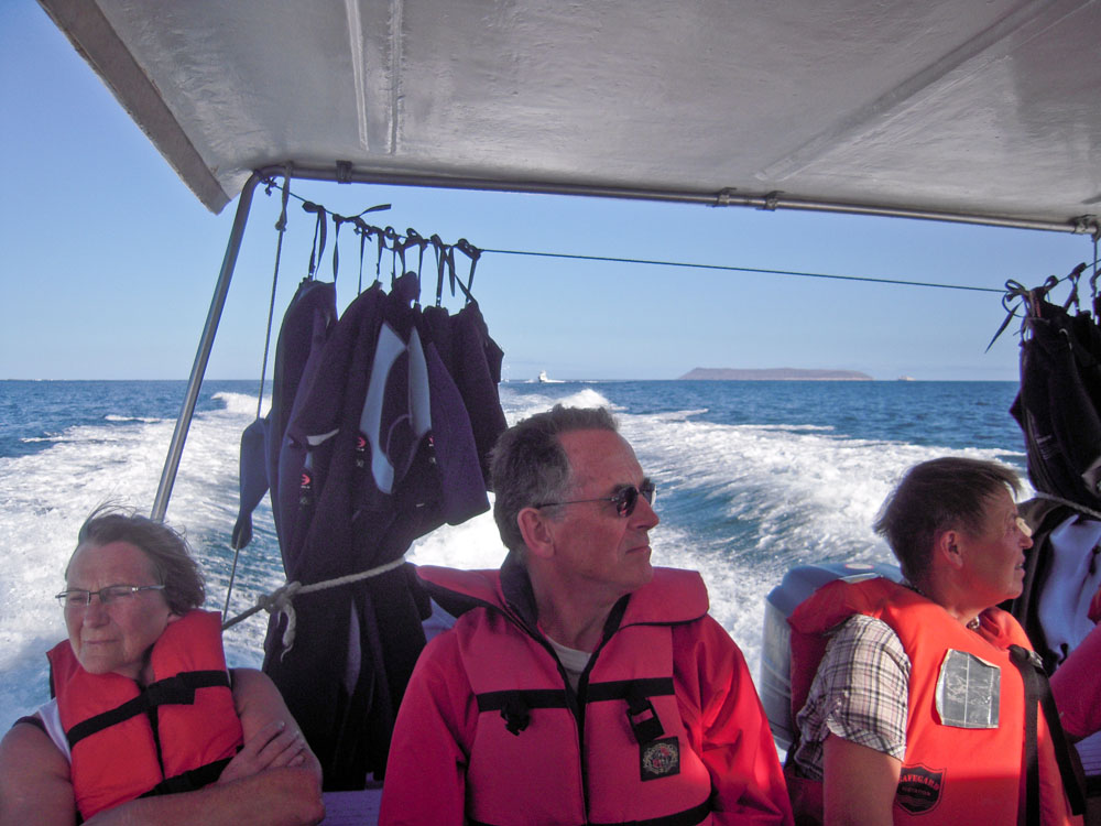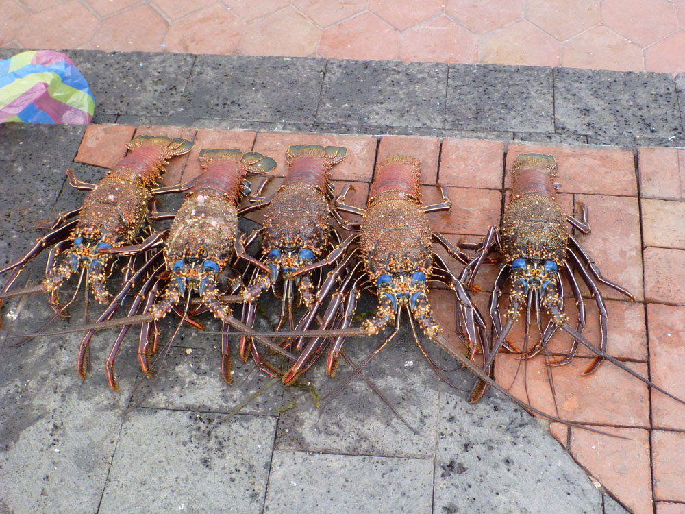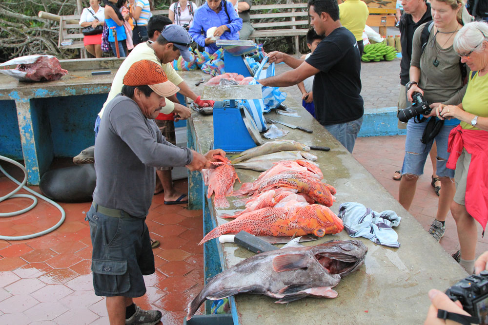 | Fisk bringes i land for næsen af de biologiske skældespande | Languster til salg på markedet | Tirsdag 20. november. Farvel til Santa Cruz, her er vi med færgen på vej til lufthavnen. Vi skal tilbage til fastlandet |