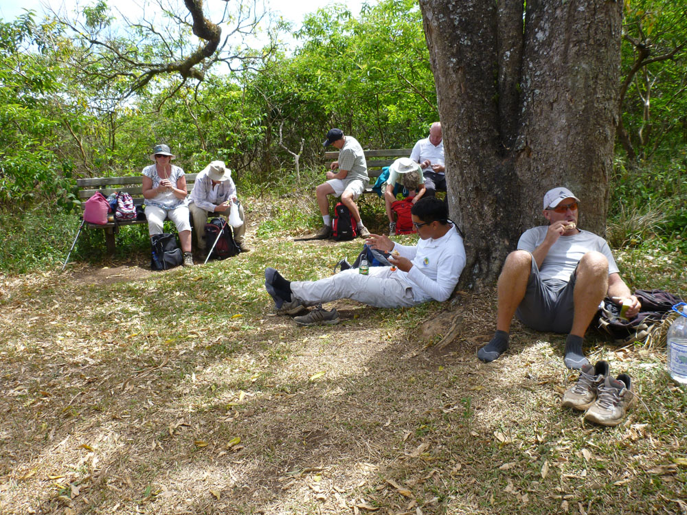 | To havskildpadder er ved at parre sig | På toppen fik vi et velfortjent hvil, hvor vi nød udsigten, inden turen igen gik hjem til hotellet | Glatnæbbet Ani - Smooth-Billed Ani blev oprindelig indført af bønderne for at æde maddiker og fluer på kvæget. Men den fandt ud af, at der var mere mad i galapagos finker. Så i dag betragtes den som skadedyr på Galapagos |