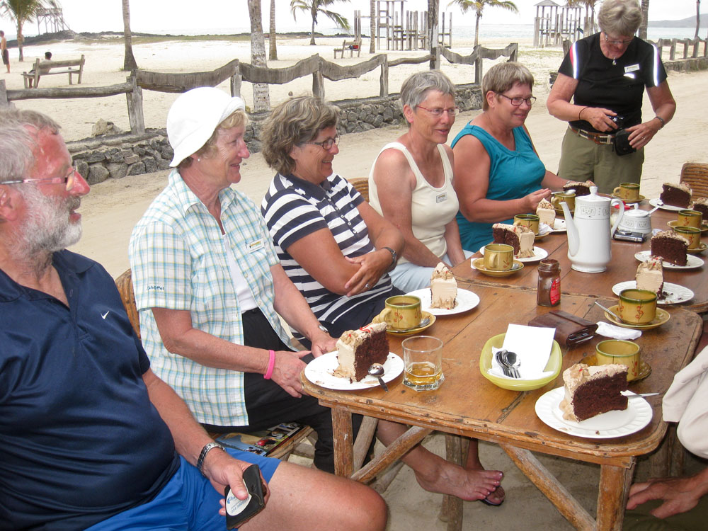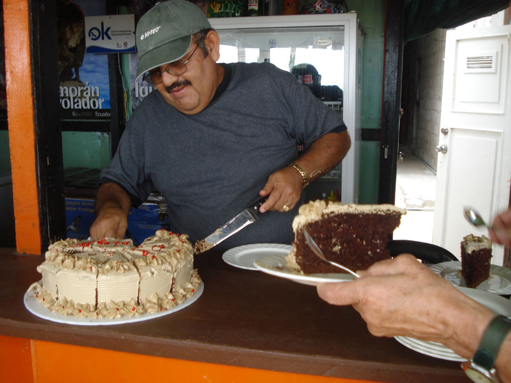 | Rubintyran - Vermilion Flycatcher | På den lille restaurant ved siden af hotellet havde Harry sagt, at det kunne være rart med et stykke lagkage, det var nærmest for pjank. Men så forsvandt "farmand", da han kom tilbage, medbragte han en flot lagkage. Den blev fordelt under stor jubel | |