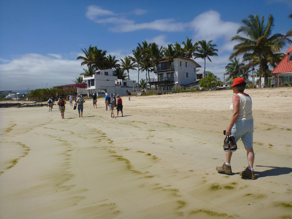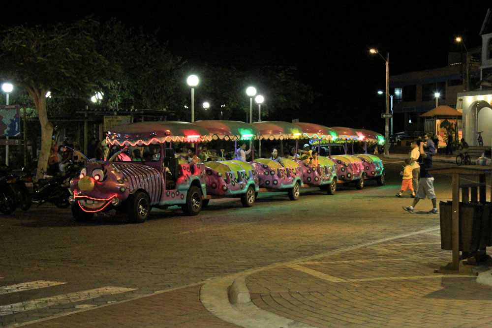 | Landleguanen er truet på Galapagos, derfor forsøger man også at opdrætte dem | Da det blev aften, var det helt tydeligt, at vi var kommet til den ø, hvor de fleste turister også kommer. Her var liv og glade dage i nattelivet | Mandag 19. november. Dagens første udflugt var til Tortuga Bay. Det regnede ikke mere, men var lidt overskyet, men i løbet af formiddagen klarede det op |