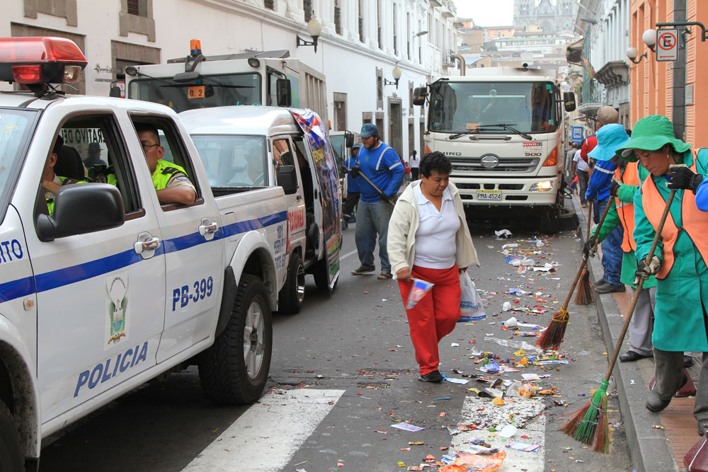 | Sidste frokost i Equador | Oprydning på gaden efter optoget | Amsterdam airport på vej hjem |