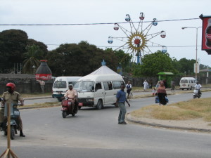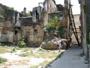 | Hotel Zanzibar, hvor vi boede da vi i 1974 første gang ankom til Zanzibar, har som så mange andre bygninger været ved at forfalde. Nu er hotellet købt af en Oman-araber, som har sat det meget flot i stand. Et hotelværelse kunne fås til ca. 50 $ pr. nat ude i byen. På Hotel Zanzibar var prisen 120 $ pr. nat, jeg pruttede lidt med receptionen og fik dem ned på 100 $, men det var mere end vores budget kunne bære. | Der er mange huse, som er ved at forfalde, mens andre har passeret det punkt, hvor de kan reddes. Det var underligt at se, at huse, som har været i forfald, tilsyneladende bruges som lodseplads. Når væggene så vælter, kan man se, hvordan værelserne har været fyldt op med affald. | Tivoli som kineserne byggede og forærede Zanzibar tilbage i 1975 eksisterer stadig, det er kun åbent ved særlige lejligheder og somme tider om lørdagen. Ude fra så alt meget rustent ud. Der mangler generelt vedligeholdelse mange steder. |