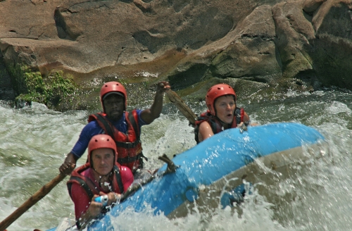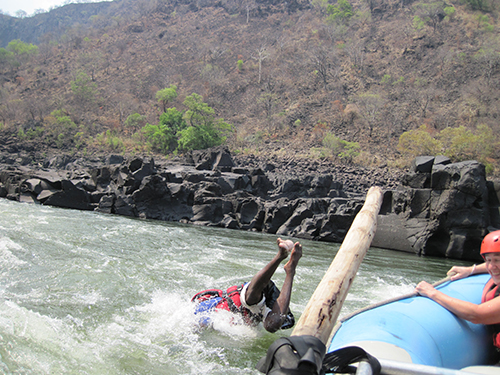 Vi sidder nu alle og skriver dagbog efter en ubeskrivelig dag på Zambezi River. Vi havde en rigtig god bådfører og vi havde det rigtig sjovt, for vi var jo ikke nogen gamle afdankede personer, som ikke kunne tåle sjov. Vi var i vandet og svømme flere gange. Vores bådfører hed ”Kartoffel” på engelsk og han kunne bare styre vores båd. Vi kom igennem alle vandfaldene uden at falde ud og det var fantastisk. Vi var igennem 25 vandfald + nogle ¼, ½ og ¾ fald, det var alle dem, som ikke var så høje, så vi skulle ned i båden og holde ekstra godt fat. Det har simpelthen været alle tider dag.
