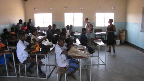 En skoleklasse i Nega-Nega, det var ikke denne klasse der var helddige at få nogle af vores borde. |