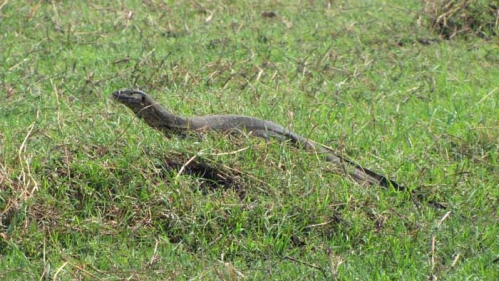 Det vrimlede med store varaner langs floden, denne her kalder de en flodvaran |