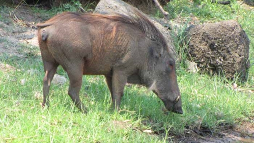 Mukambi Lodge havde et tamt vortesvin, som boede på lodgen og nede under restauranten boede hans familie, mor og tre børn. Han hed selvfølgelig Pumba. |