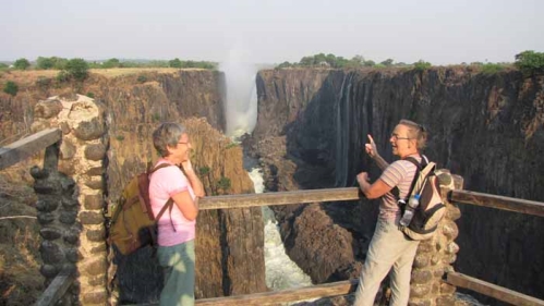 Der var ikke ret meget vand i Victoriafaldet, hele væggen bag Synnøve er normalt dækket af vand, men vi var ved faldet i den aller tørreste tid |