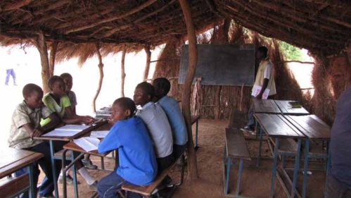 Næste stop var besøg på skolen. Det var godt nok et meget fattigt indtryk, vi fik her. Gulvet bestod af nogle løse mursten 15x10x5. Synnøve var ved at falde flere gange. Der var 4 klasseværelser, men kun et i brug, de andre var de ved at bringe i orden. Der var nogle af eleverne, der sad udenfor i nogle små ”carporte”, som bestod af grene, som var gravet ned i jorden og de bar et stråtag, under det stod nogle skoleborde, som var fremstillet af lokale håndværkere. Vi så deres skolehave, hvor de dyrkede spinat og græskar, bladene fra græskarrene brugte de også som spinat. Deres største problem herude var, at de ikke havde en pumpe med vand, men måtte hente vandet ved en sø, som bestemt ikke var ren. Efter en autograf i skoleinspektørens gæstebog, skulle vi videre.