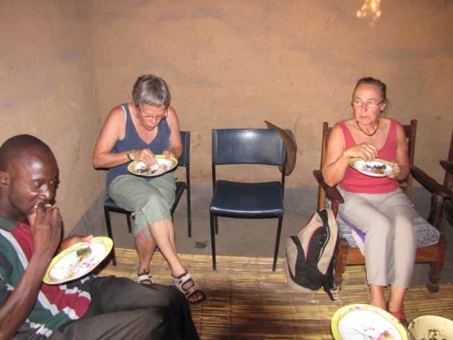 Vi blev inviteret på frokost, det var lækker mad, men det skulle indtages med fingrene på afrikansk maner. |